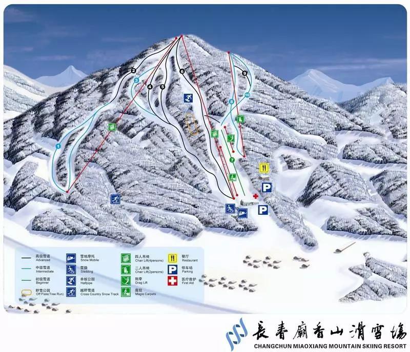 可投入使用雪道15条,高级雪道4条,中级雪道3条,初级雪道2条,教学雪道2条,野雪道3条,技巧雪道1条,地形公园1个,单板公园2个,单板墙2处。投入4700万元建设长春市唯一一条六人高速吊椅索道,运载力达到2600人/小时。双人吊椅索道、拖牵各1条,魔毯6条。投入160万新增造雪设备5台,投入2600万完成高级雪道地下管网建设。投入300万建设雪道灯光秀,使庙香山夜场滑雪在各类灯光的编织下,暖意融融。庙香山戏雪乐园包含雪圈、趣味雪橇、雪上飞碟、雪地CS、雪地DIY、狗拉爬犁、马拉爬犁、雪地摩托、雪地自行车、雪地坦克、雪地挖掘机等十多个经典戏雪项目。冰雪节期间设计举办雪地火人节、“雪里捞”吃喝大赛、雪地比基尼、大众高山滑雪彩烟赛、首届“冰雪时尚之星”选拔赛等活动17项。
