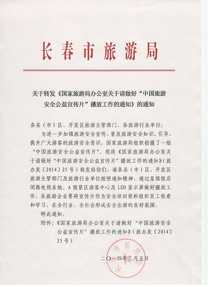 关于转发《国家旅游局办公室关于请做好“中国旅游安全公益宣传片”播放工作的通知》的通知