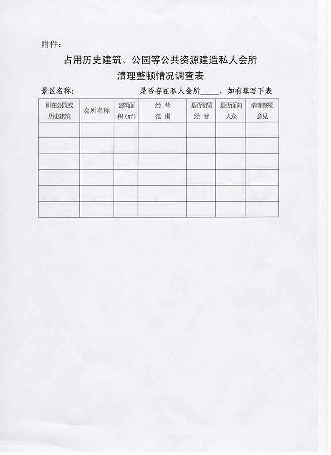 365体育娱乐场关于上报占用历史建筑、公园等公共资源建造会所清理整顿情况的通知